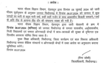 July 5, 2024उत्तराखंड के पिथौरागढ़ जनपद में एक 80 साल की बुजुर्ग महिला से घर में घुसकर बलात्कार...