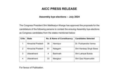 Breaking: कांग्रेस ने उप चुनाव को लेकर की प्रत्याशी की लिस्ट जारी…
